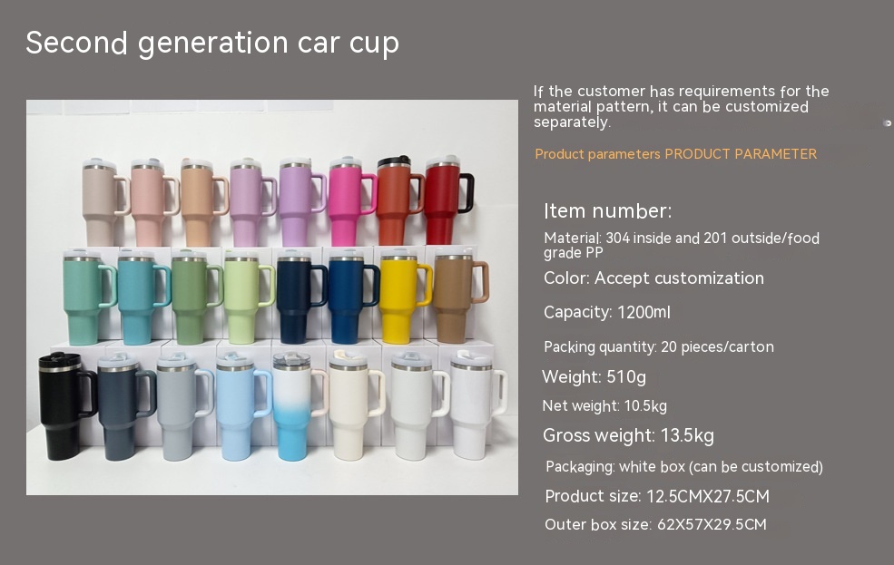 40oz Handle Ice Cream Vacuum Cup 304 Cup Cold Beer Cola Car