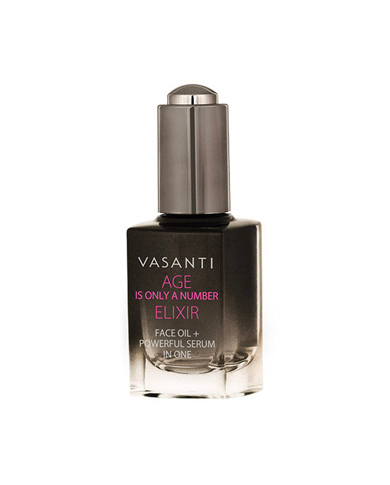 For those who believe Age Is Only a Number... meet our Elixir. Formulated with 94% natural and clinically proven ingredients, including squalane (the first on the label). This premium face oil + serum helps boost collagen, reduce wrinkles and fine lines, smooths textured skin, improves suppleness, lift and firm, restore elasticity, brightens dull skin, evens out dark spots and hydrates. A joyful aging solution to uplift and help you regain your natural youthful glow.