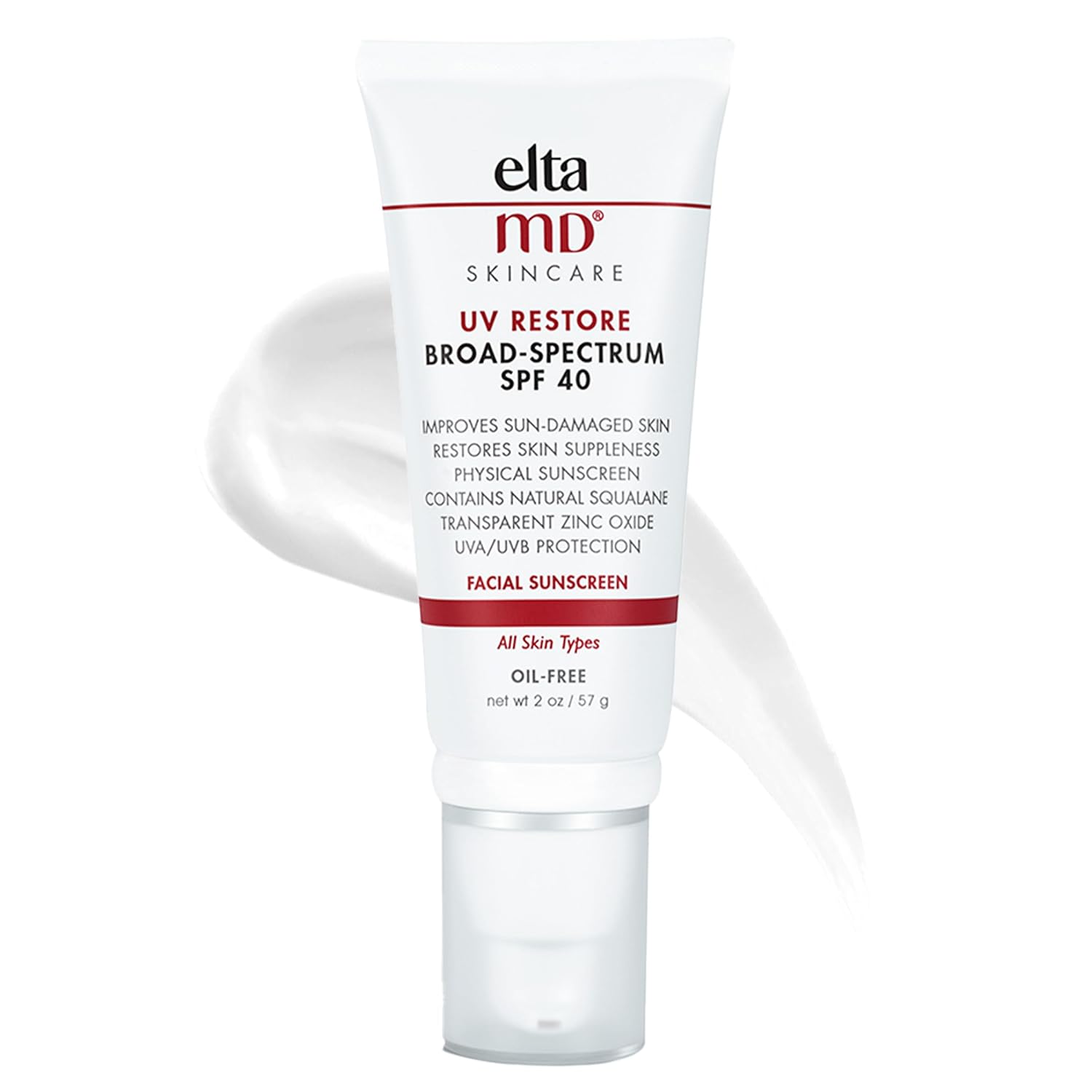 EltaMD UV Restore Face Sunscreen, SPF 40 Mineral Sunscreen for Sun Damaged Skin Repair, Improves Skin Suppleness and Moisture, Formulated with Zinc Oxide, Dermatologist Recommended, 2 oz Tube