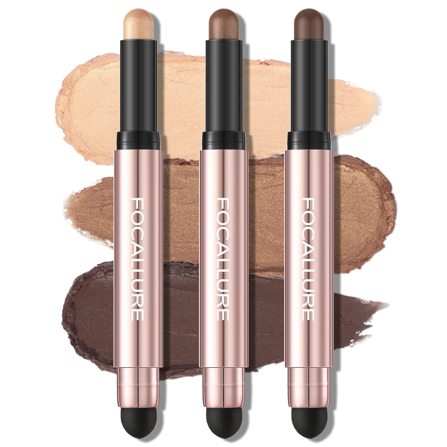 FOCALLURE 3 Pcs No Crease Eyeshadow Sticks,Shimmer & Matte Eye Shadow Crayon with Blending Brush,Smooth Cream Highlighter Pen,Long Lasting Waterproof Eyeshadow Brightener Stick Makeup,July In Seattle