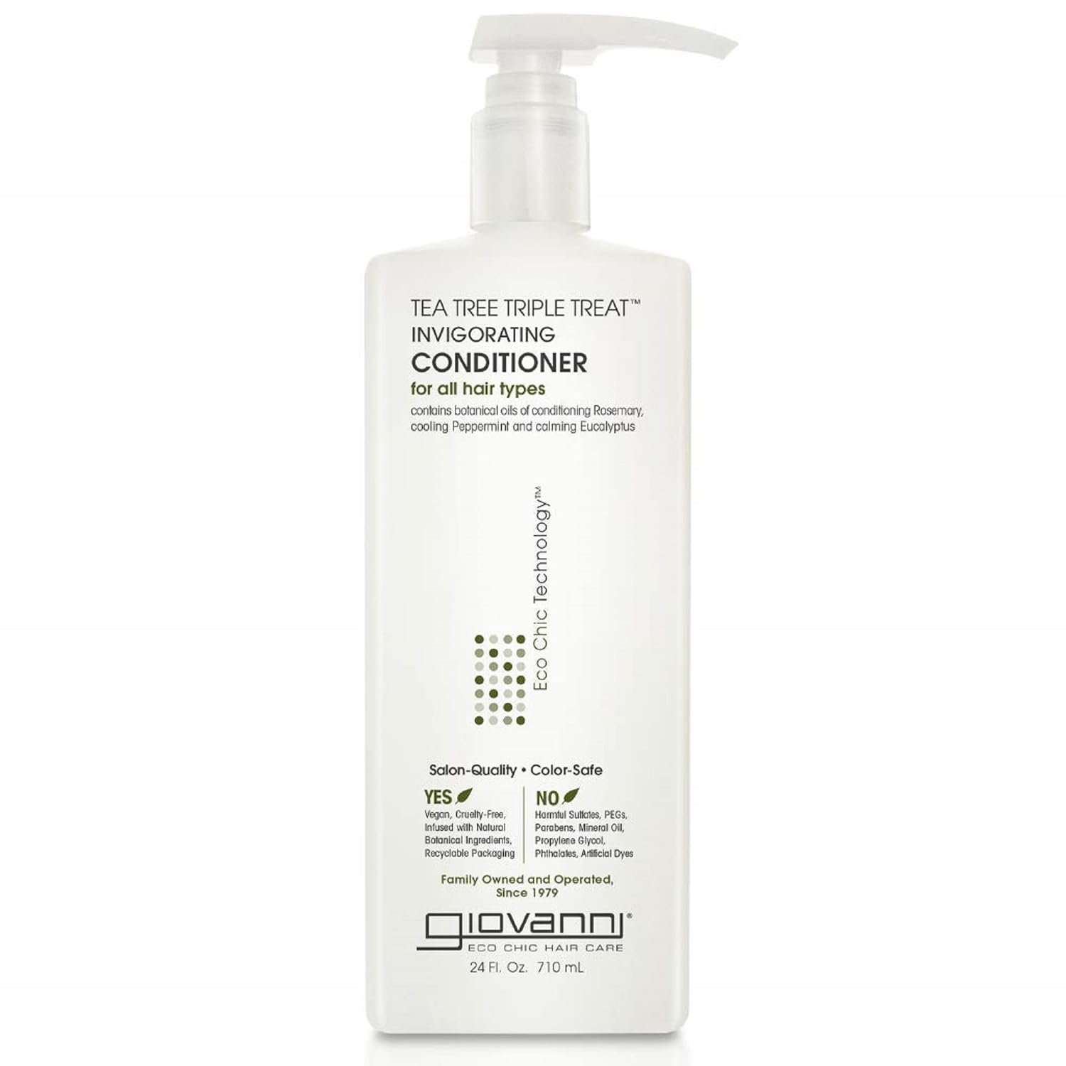 GIOVANNI Tea Tree Triple Treat Invigorating Conditioner - Cooling Peppermint, Eucalyptus, Rosemary, Helps Dry Flaking Scalp, Paraben Free, Helps to Moisturize, Smooth & Detangle - 24 oz (1 Pack)