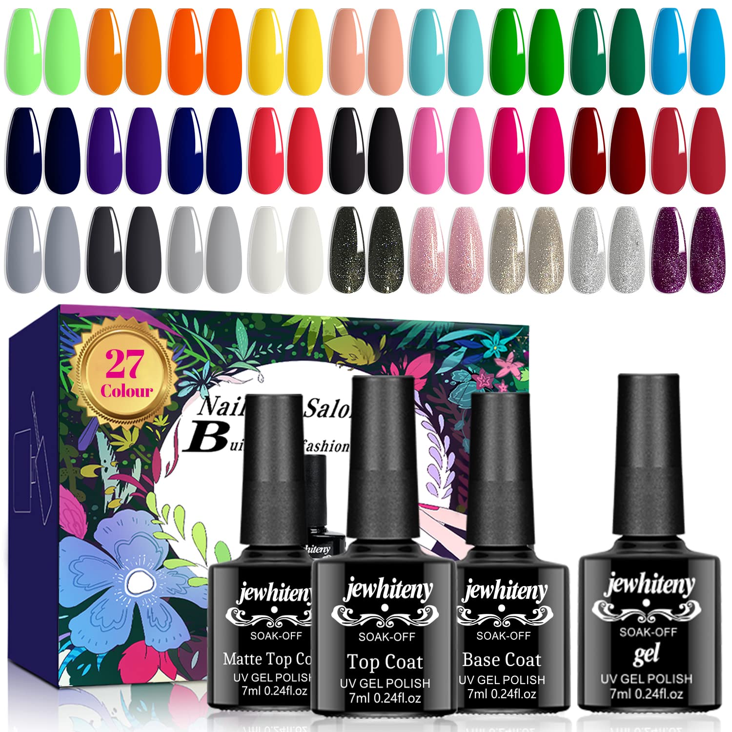 JEWHITENY 30PCS Gel Nail Polish Kit 27 Colors Gel Polish Set Gel Nail Kit Soak Off Nail Gel Polish Set for Manicure Nail Art Salon/Home Starter Kit