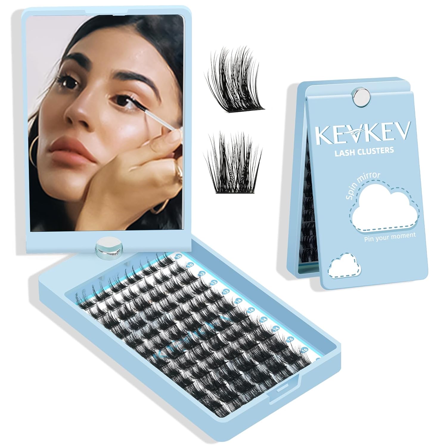 KevKev Lash Clusters 72 Pcs Eyelash Clusters DIY Lash Extensions Cluster Lashes Soft and Thin Band with 360 Spin Mirror Suitubel for Eye Make Up Travel Use(Frozen,D-10-16mix)