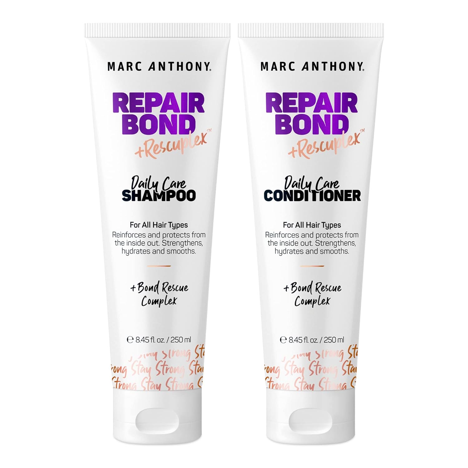 Repair Bond +Rescuplex Shampoo & Conditioner Set: Hair fiber is made up of bonds that give it strength, which can be damaged by things like hair color, daily styling, and pollution. As part of the Marc Anthony Repair Bond +Rescuplex system, this shampoo and conditioner set protects disulfide bonds from initial damage, rebuilds bonds and strengthens hair. 8.4 fl oz each.