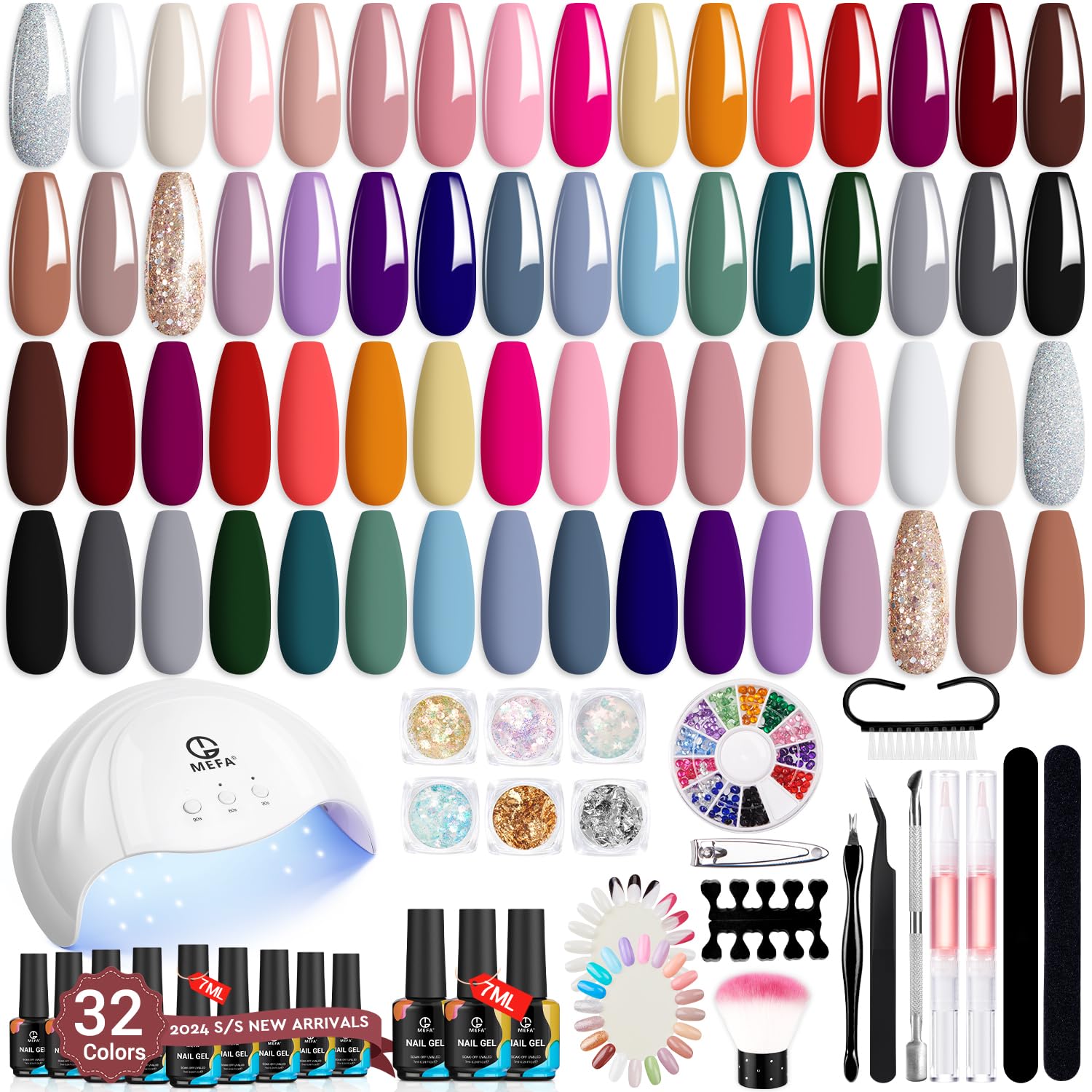 MEFA Gel Nail Polish Kit with U V Light 56 Pcs, 32 Colors Classic Collection Nude Pink Gel Nail Polish Set with Base and Matte/Glossy Top Coat Nail Art Decorations Manicure Tools DIY Salon Home Gifts