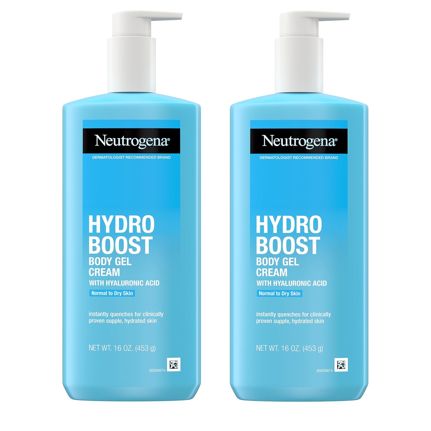 Neutrogena Hydro Boost Body Moisturizing Gel Cream with Hyaluronic Acid, Fast Absorbing, Lightweight Hydrating Body Lotion for Normal to Dry Skin, Paraben-Free, Twin Pack, 2 x 16 oz