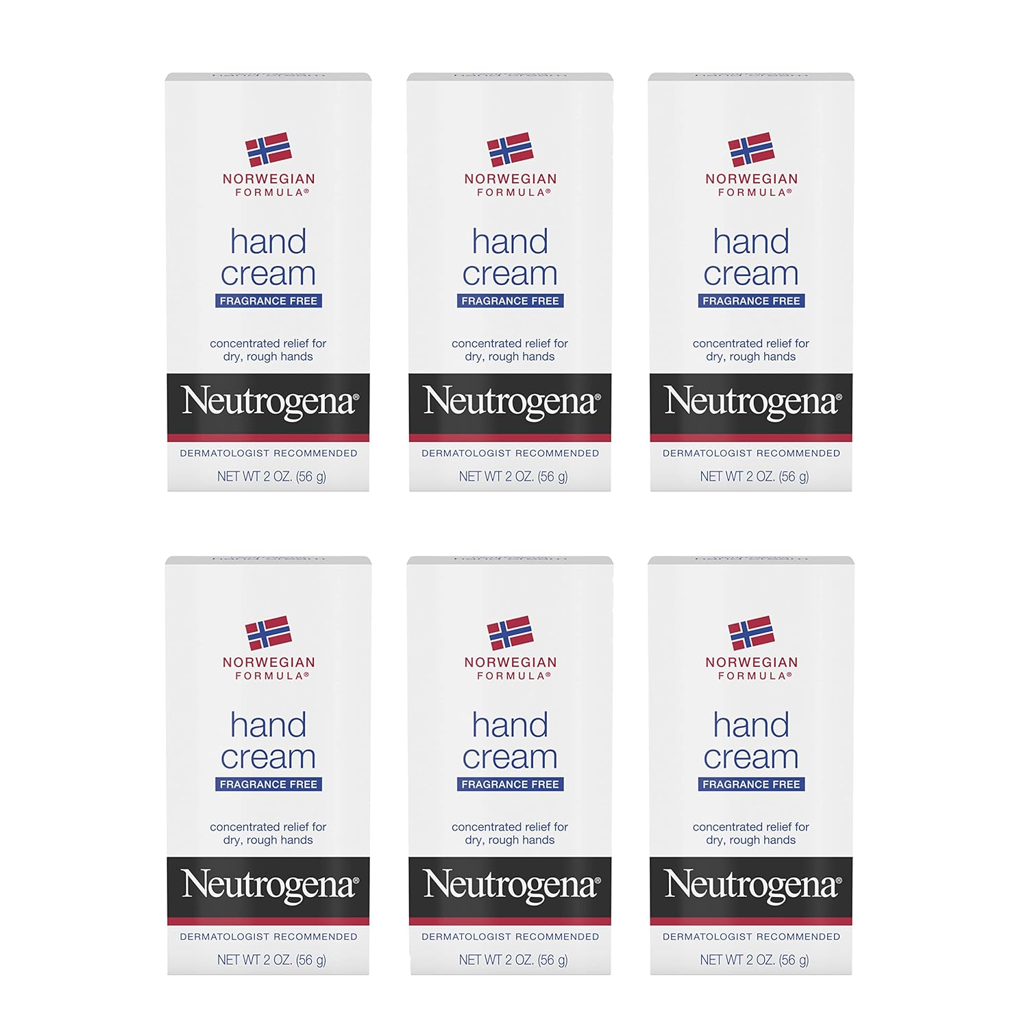 Neutrogena Norwegian Formula Moisturizing Hand Cream Formulated with Glycerin for Dry, Rough Hands, Fragrance-Free Intensive Hand Lotion, 2 oz, Pack of 6 (Package may vary)