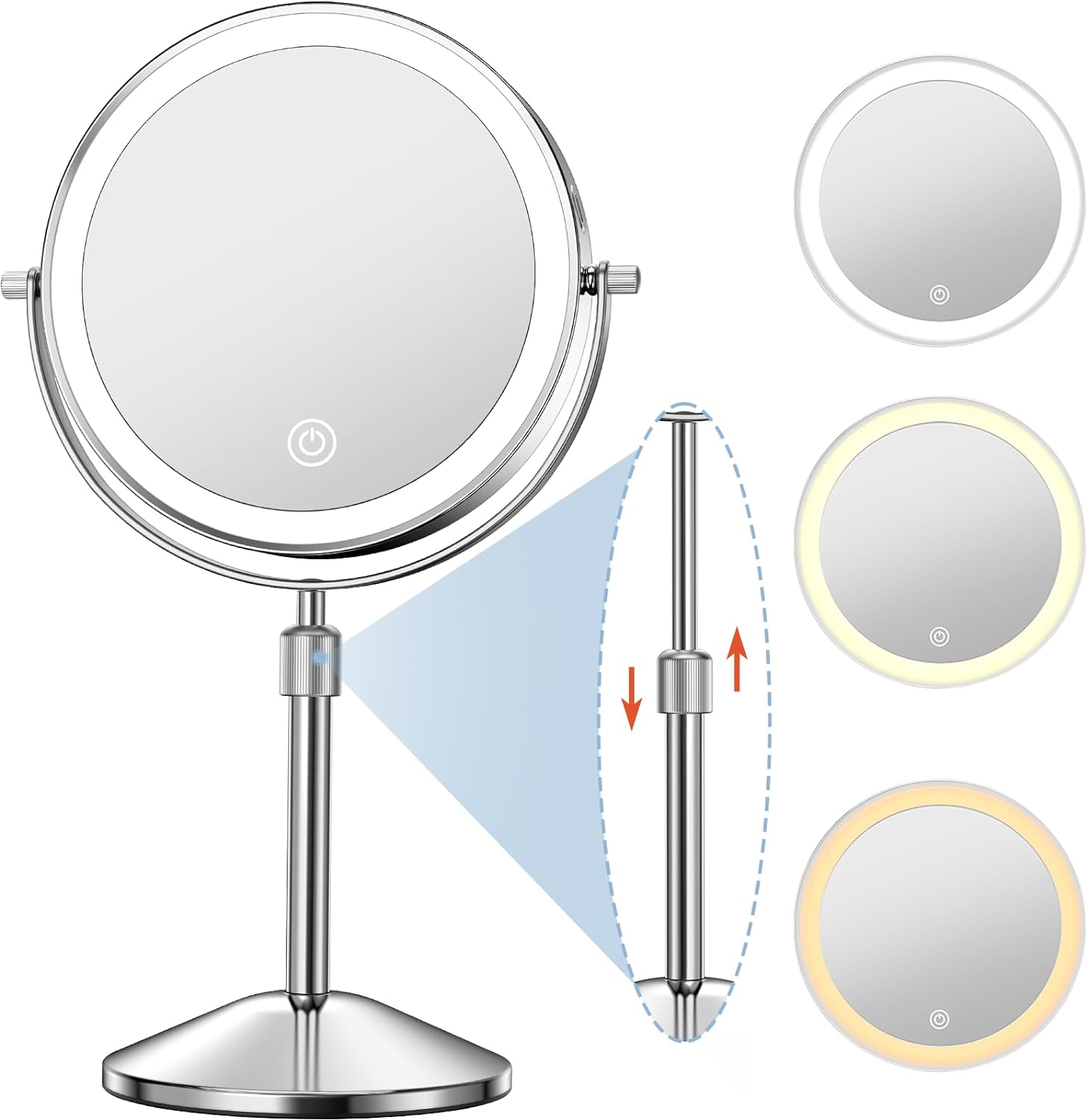Niuphia Vanity Mirror with Lights 7" Rechargeable 1x/10x Lighted Makeup Mirror Adjustable Height Double Sided Mirror with Lights 360¡Rotating Makeup Mirror