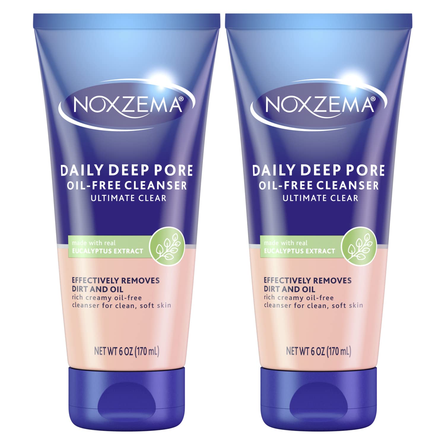 Noxzema Ultimate Clear Daily Deep Pore Oil-Free Cleanser for Soft, Smooth Skin - Noxzema Daily Face Wash for Women and Men, Noxzema Facial Cleanser for Acne Prone Skin, 6 Oz Ea (Pack of 2)