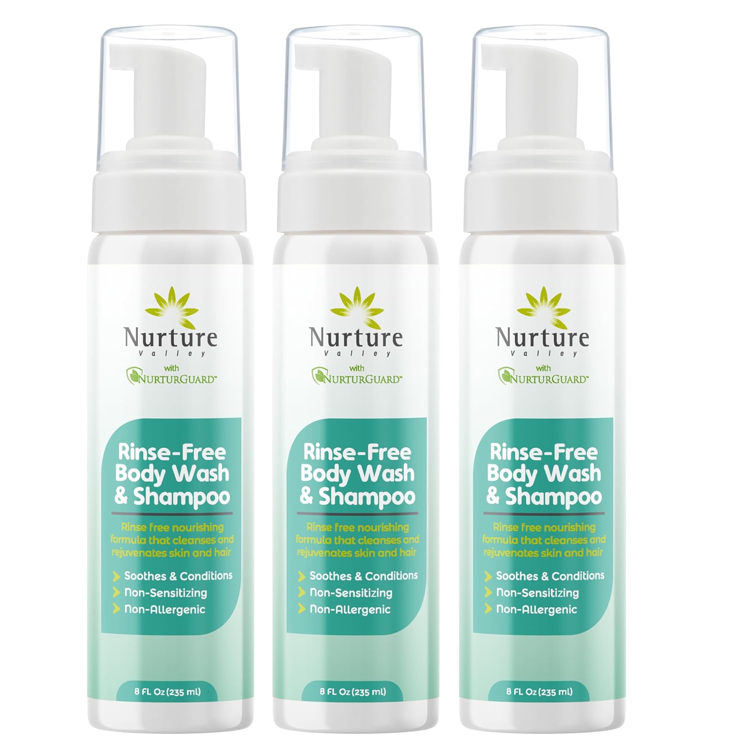 Nurture Rinse Free Body Wash & Shampoo w/Aloe | Hospital Grade Hair & Body Waterless Cleansing Foam | Women, Camping, Elderly & Hospital Patients | Shower Bath & Hand Soap for Sensitive Skin