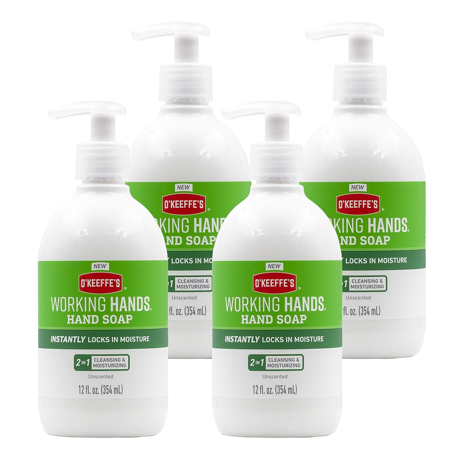 O'Keeffe's Working Hands Moisturizing Hand Soap, 12 oz Pump, Unscented, (Pack of 4)