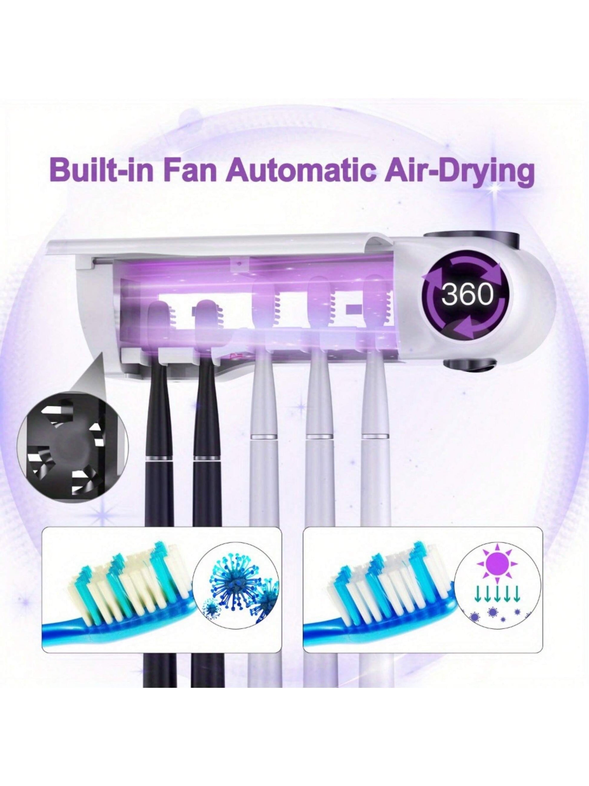Toothbrush And Toothpaste Mount Built-In Fan Drying 5 Toothbrush Slots 6 Minutes Timing Function Wireless Wall Mount Suitable For Home Use Toothbrush Holder