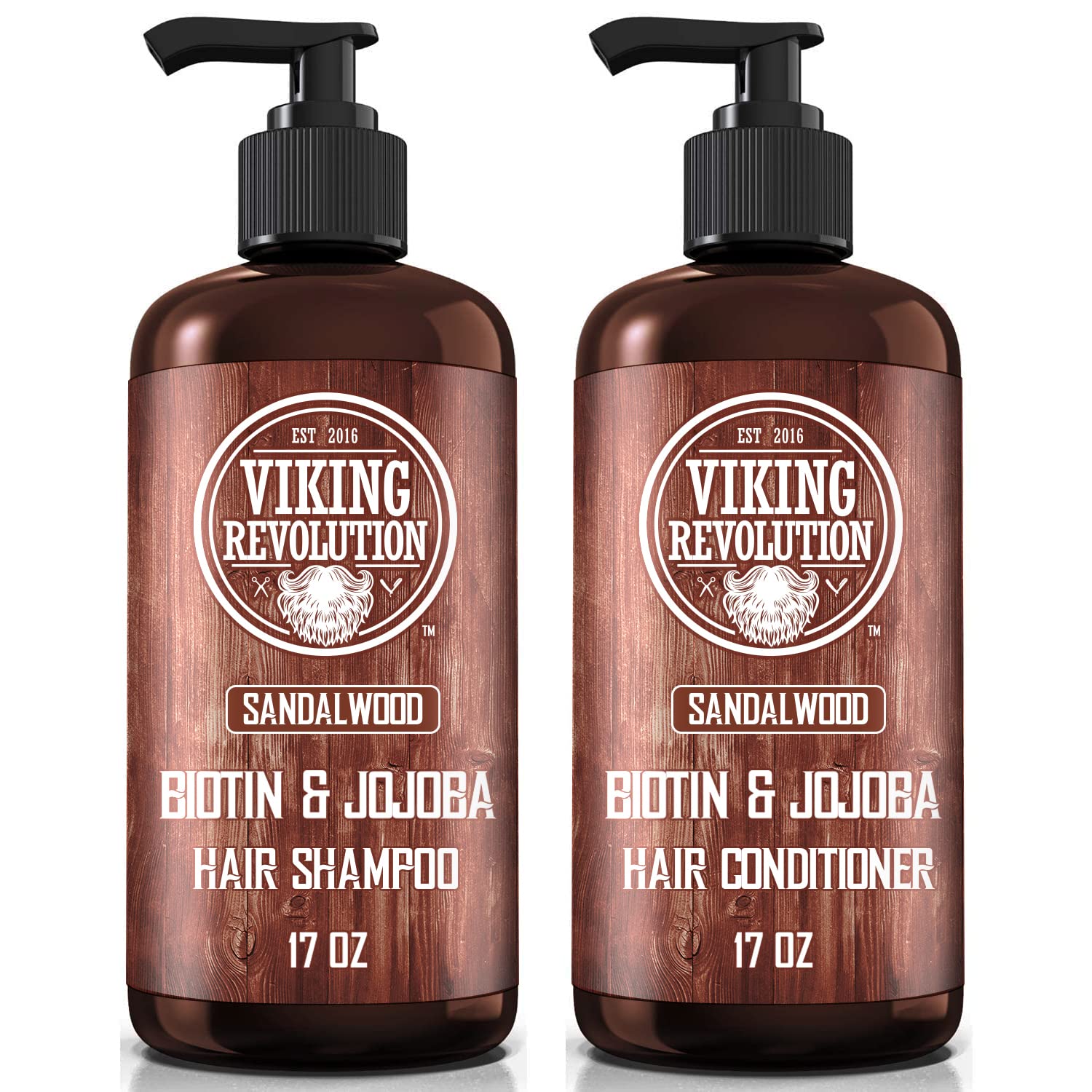 Viking Revolution Sandalwood Shampoo and Conditioner Set with Biotin and Jojoba Oil - Natural Hair Shampoo and Hair Conditioner for Men with Vitamin B5 (17 Oz)